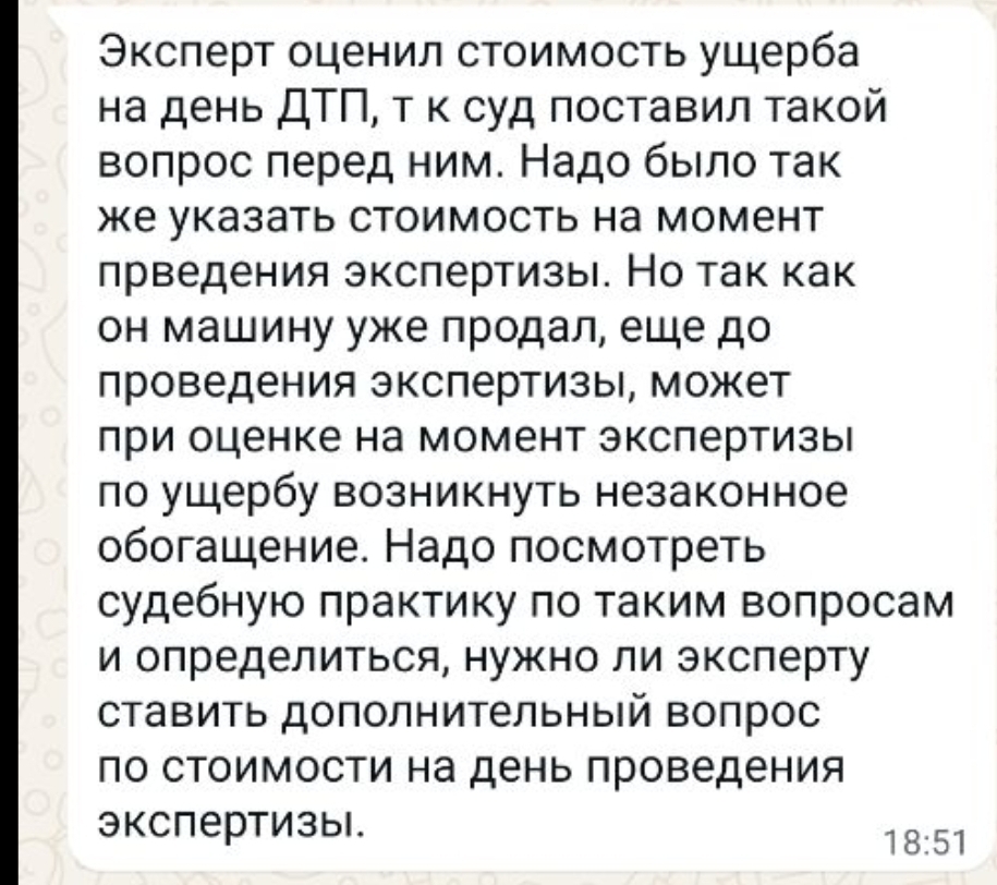 Резюме: Сообщение адвоката, вероятно, касается судебного процесса по взысканию дополнительного ущерба. Чтобы доказать недобросовестность потерпевшего, сосредоточьтесь на противоречиях между экспертизами и обстоятельствах продажи автомобиля. Учитывая ваше нахождение в армии, важно поддерживать связь с адвокатом для оперативного реагирования.